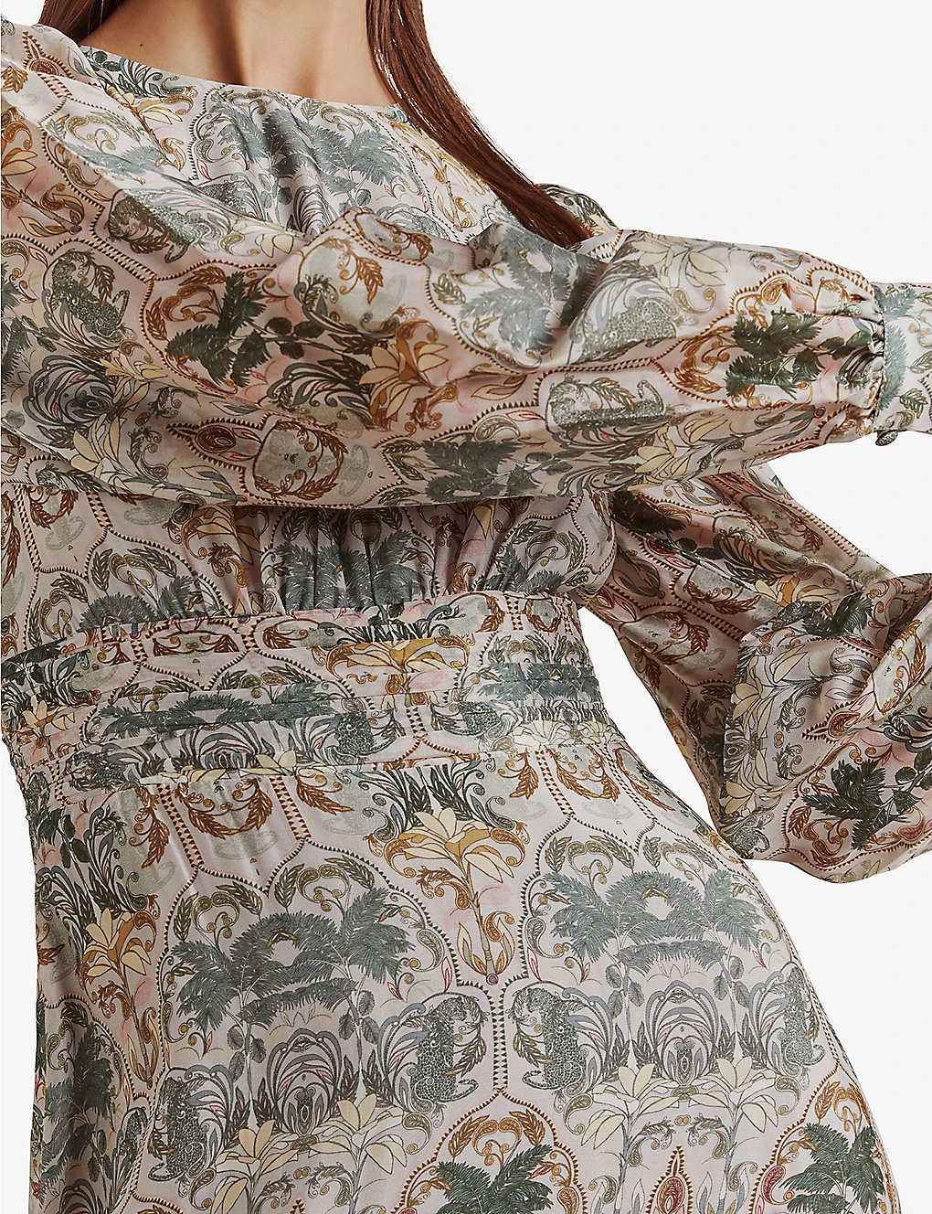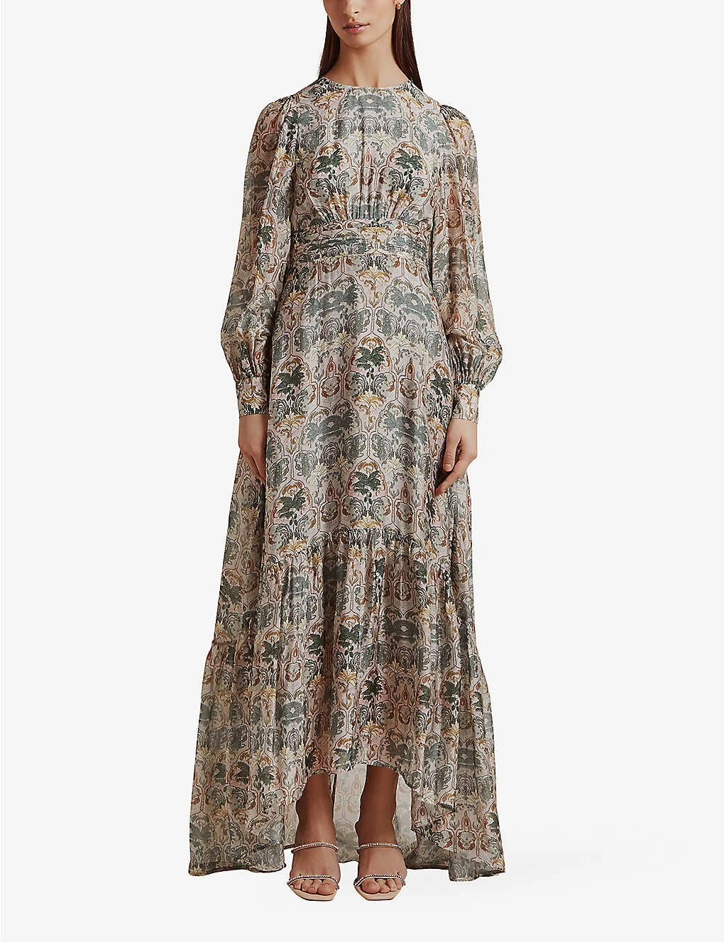 - Round neck, long balloon sleeves all-over graphic-print, frilled hem, maxi length
