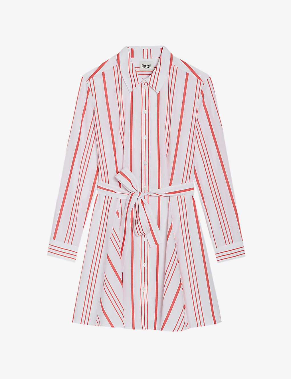 CLAUDIE PIERLOT Rizzo Stripe-pattern Tie-waist Cotton Mini Dress