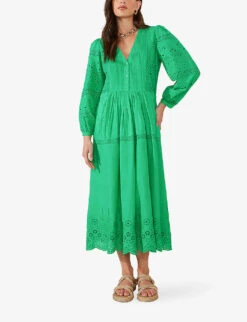 Whistles Broderie Puff-sleeve Relaxed-fit Stretch-cotton Top