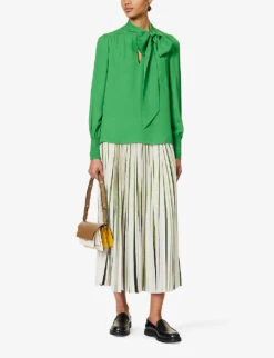 - Regular fit, V-neckline, long sleeves, shirred cuffs, two slip pockets at front, all-over print, tiered hem