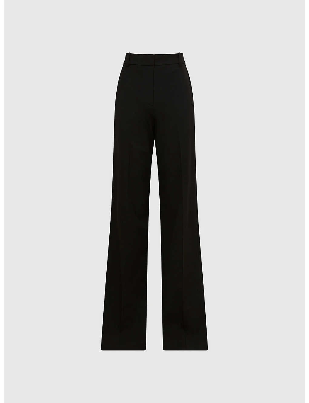 - Tailored, mid-rise, wide-leg, structured waistband, belt loops, side pockets, welt pockets at back