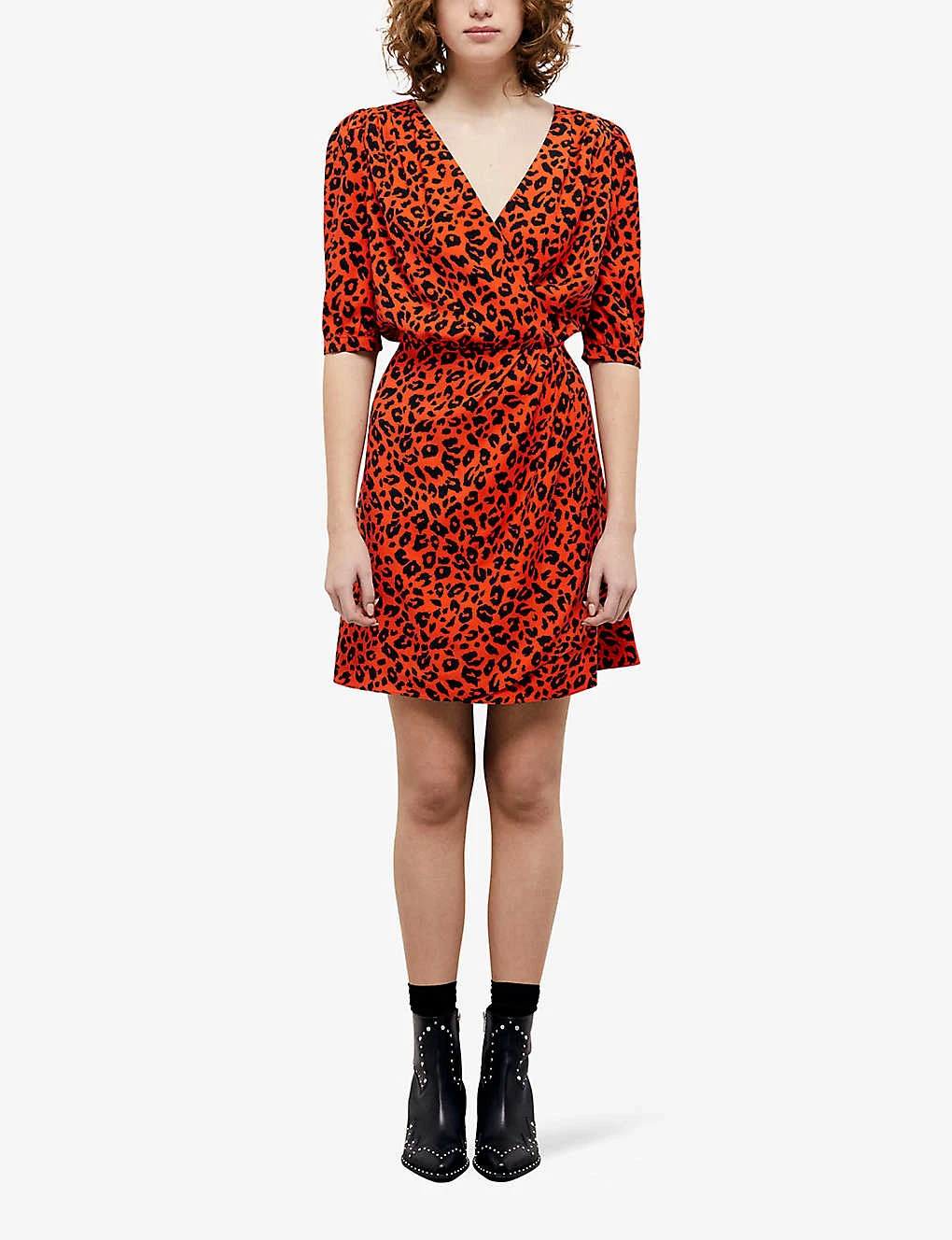 THE KOOPLES Leopard-print V-neck Regular-fit Woven Mini Dress